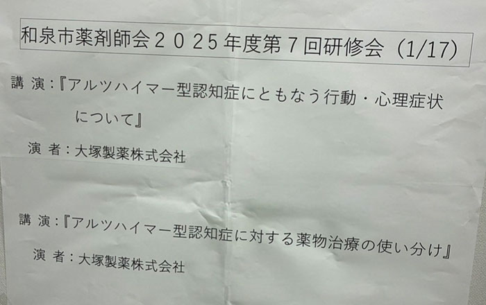 令和7年度和泉市地域医薬品提供体制協議会 1.薬剤師会会長挨拶 2.委員紹介 3.協議会規則・指針の説明 4.各リストの公表の説明及び活用のお願い (薬局機能リスト・夜間休日対応リスト・地域医薬品リスト) 5.その他 |